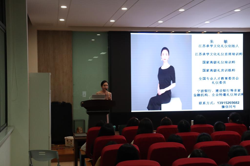 在学院楼D912报告厅举办“形象与礼仪”专题讲座,活动邀请到中国礼仪研究专家朱敏老师为食品学子作分享,学院分团委书记王胤及100余名学生参加了讲座。