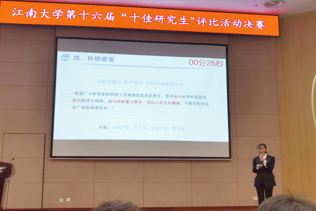研究生李月一路过关斩将,顺利成为“十佳研究生”候选人,入围决赛(全校共15名)。在决赛环节,各位优秀研究生依次进行个人展示、专题问答和观众投票,经过激烈角逐,李月以第3名的优异成绩荣获耽美漫画
