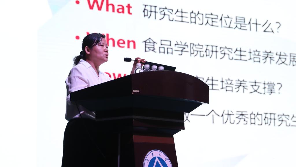 孙秀兰副院长以“食代江南,止于至善”为主题进行科学道德教育。她重点介绍了学院的研究生培养,希望大家提高专业素养,努力成为能适应新时代,有优秀人格的创新性人才。