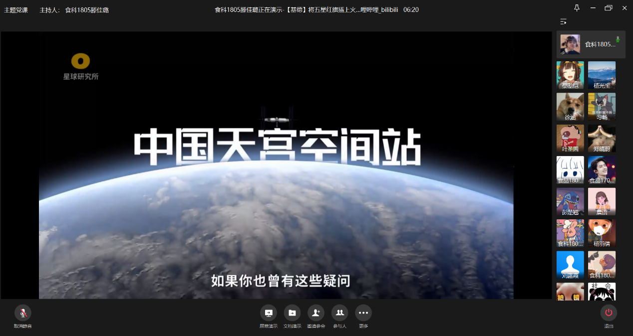 本科生第二党支部以线上会议的形式开展“学习中国航天发展历程”主题党课。党课由党支部书记杨光宝担任主讲,全体支部成员参加。