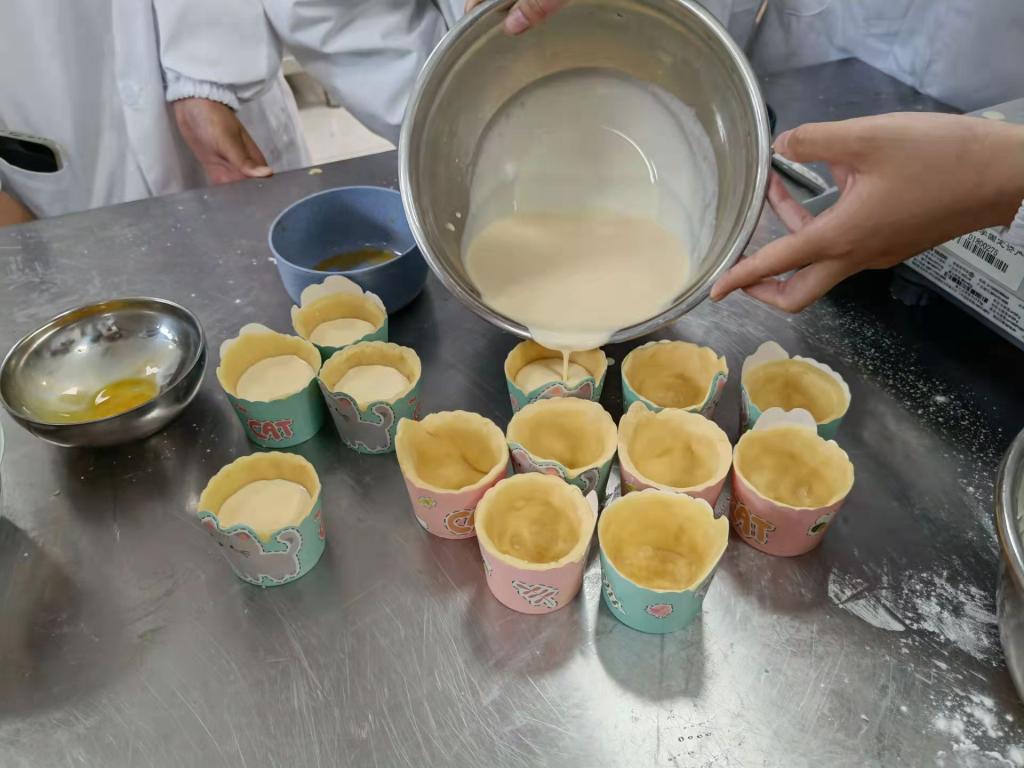 心理健康与发展中心联合烘培科学俱乐部在食品工坊举办了2021级新生“与‘挞’同行,温暖寒冬”蛋挞制作手工坊活动。