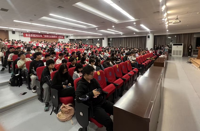 研支团宣讲人杨晗婕向同学们讲述了他们的故事,300余名学生,10余个乡镇的走访,58家,72次的入户......他们用实际行动诠释了食代青年的担当,心之所向,方能远行。
