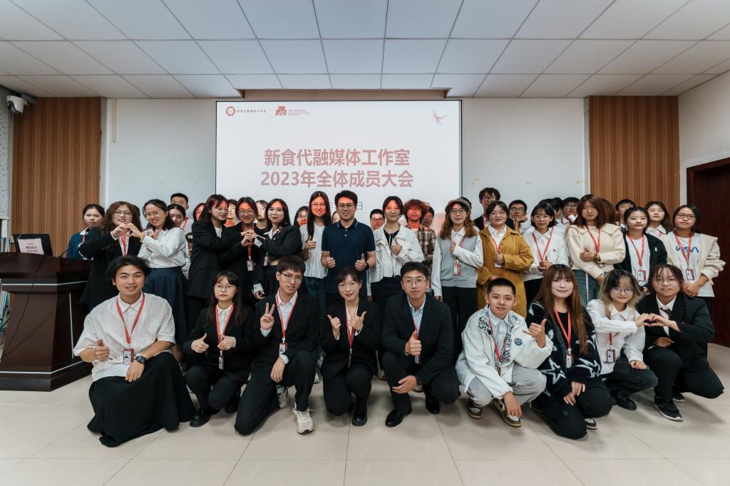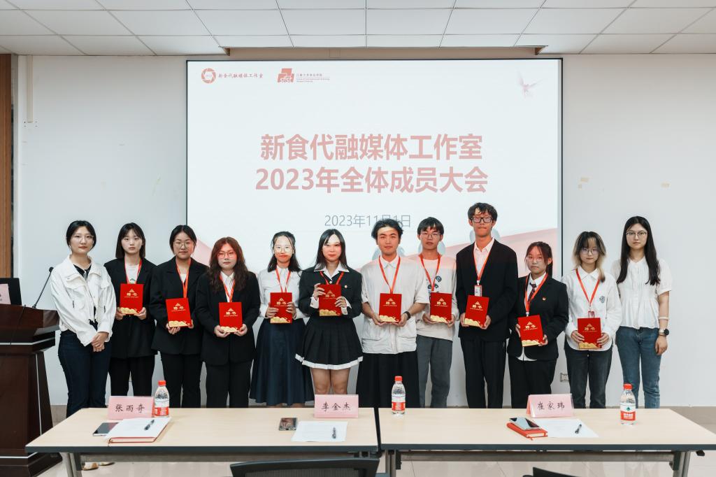 在热烈的掌声中,2023级新成员代表王子墨发言。作为一名新干事,她真切讲述了自己来到工作室的心路历程、在这里的成长和第一次完成任务的欣喜,并期待下一步的无限可能。