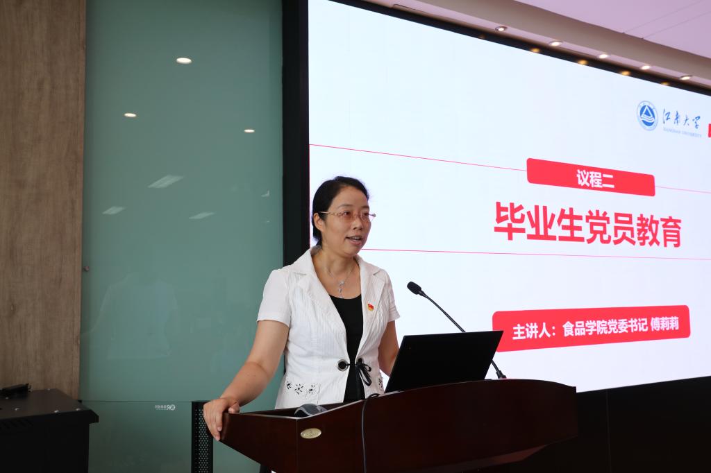 首先,傅莉莉书记做毕业生党员离校教育。她指出,共产党员是一个光荣的称号,更是一份责任与使命,希望大家始终发挥党员先锋模范带头作用,并提出三点期望。一是不忘初心、牢记使命。希望大家提高政治意识、学会常寻初心、加强思想学习、注重实践积累,永葆共产党人的初心。二是恪守正道,敢于创新。既要遵守党规党纪、法律法规、规章制度,又要恪守专业之道。在此基础上,善于发现勇于创新,将所学服务于国家需要,推动中国食品行业的发展。三是勤勉有为,展现风采。希望大家始终铭记“勤业、创新、争先、共赢”的院训,将在耽美漫画