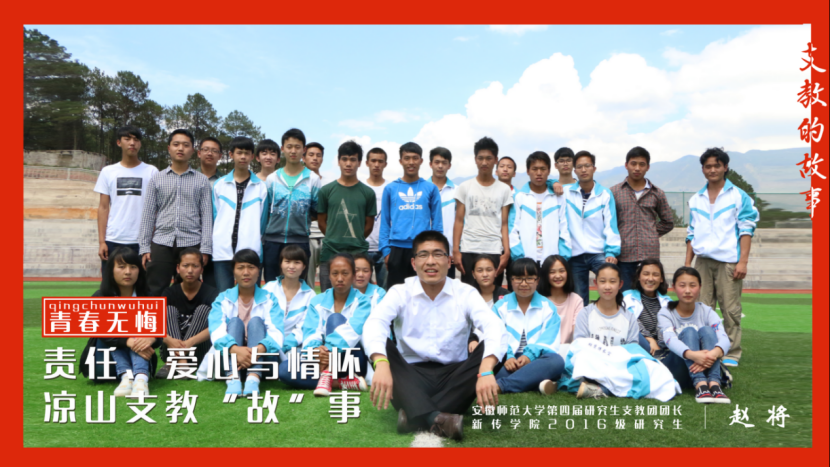 人文学院辅导员赵将首先作了“责任、爱心与情怀:凉山支教的故事”的主题分享,他用教育之责、公益之爱、西部之美三个部分内容,分享了前往四川省凉山彝族自治州普格中学支教的经历。他鼓励大家积极参加研究生支教团,用一年不长的时间,做一件终生难忘的事!