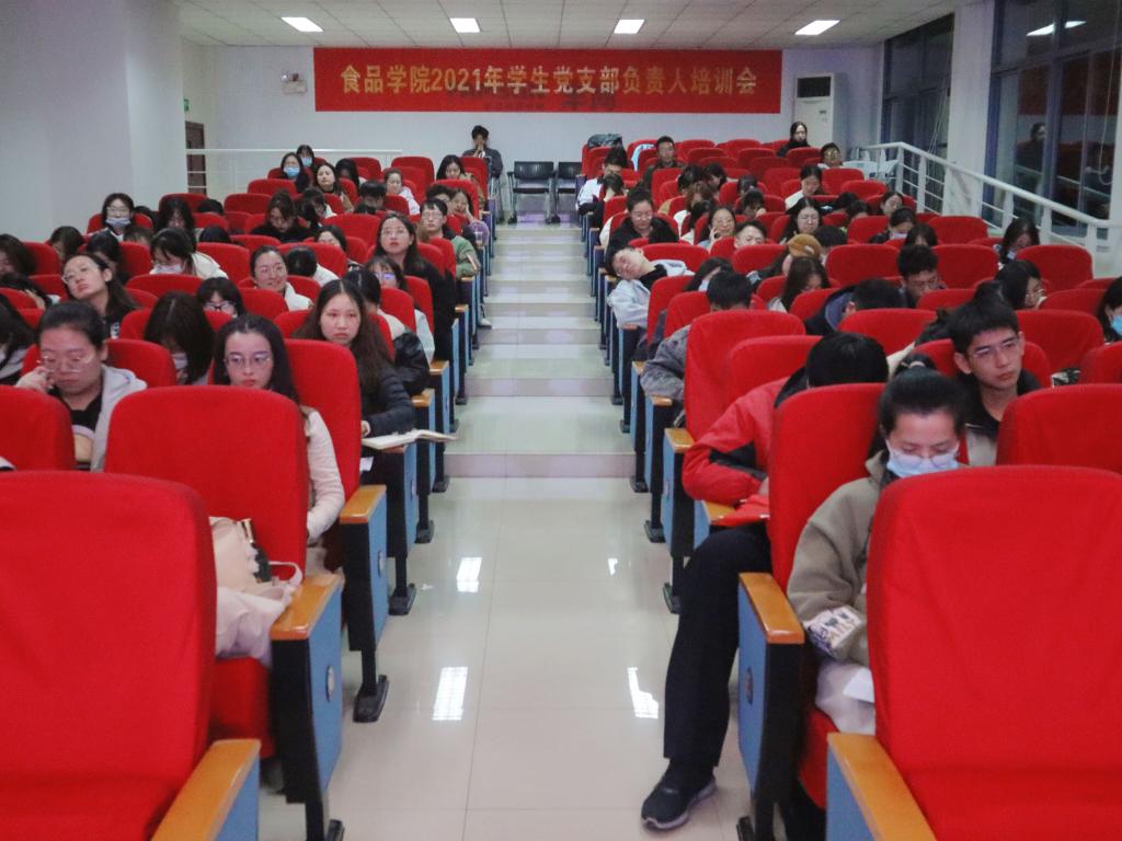 在食品楼D912举行2021年学生党支部负责人培训会。学院分团委书记朱伟、研究生辅导员胡卉君以及100余名学生党支部委员参加了活动。