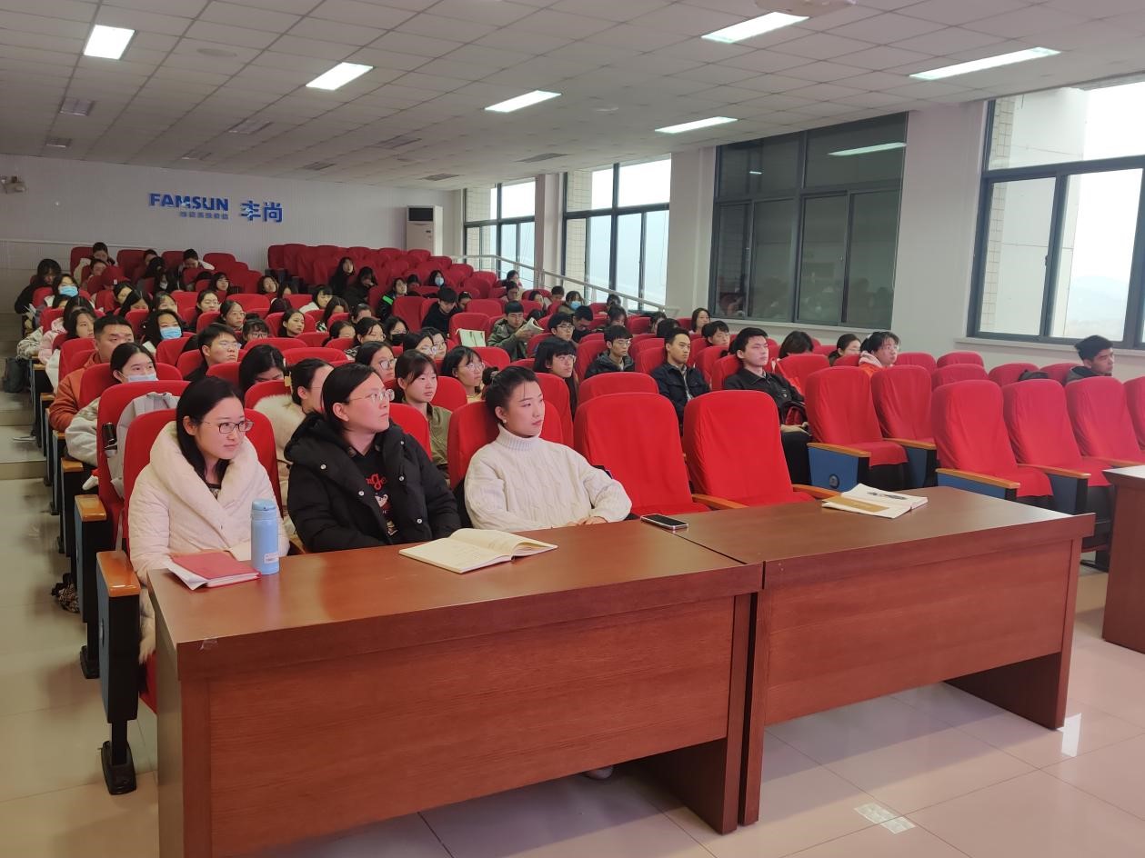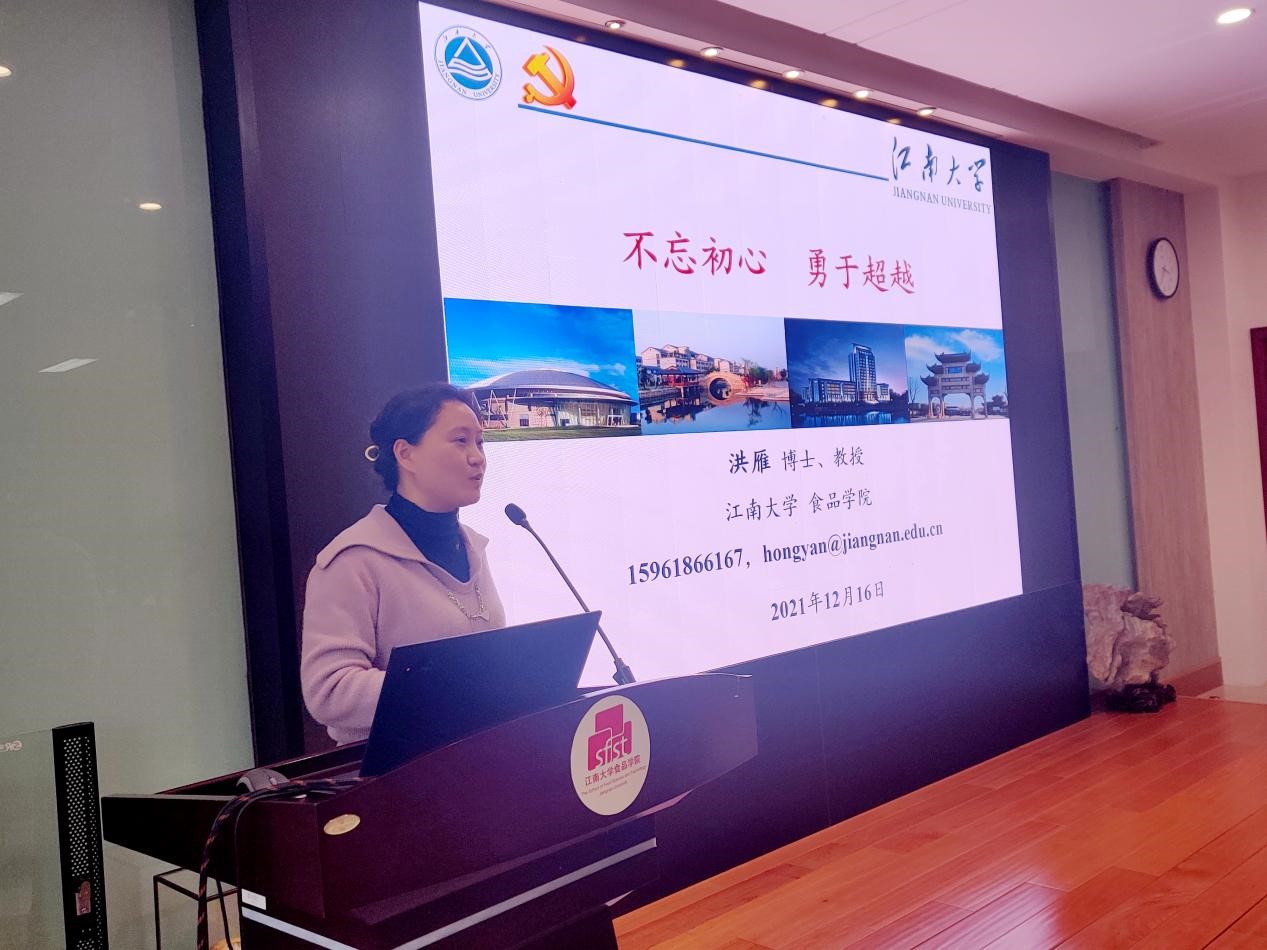 首先,洪雁以“我是谁”这一问题引入主题。她讲述了起初从高中进入大学后在生活学习巨大差异下的不适应,但选择积极面对困难获得了较好的发展。在辅导员岗位工作四年后,勇于突破个人舒适圈,加入顾正彪老师团队,开始了科研生涯。紧接着,洪雁分享了科研工作中收获的一些荣誉。2020年,顾正彪教授牵头完成的项目“淀粉结构精准设计及其产品创制”,获得国家技术发明奖二等奖。作为团队主要完成人,她分享了参加国家科学技术奖励大会的领奖经历与感受。她表示国家与人民对科研工作者的尊敬与期望,感到既自豪又倍感压力,将终坚持着“坚持、坚定、坚信”理念,把“捣浆糊”事业做好做深,为人民、为社会带来更大的福利。最后,她对年轻人的提出几点期望,即善于积累、勇于尝试、及时总结、做出最佳选择。洪雁老师以一个个故事,将个人成长、校史校情、党史国史有机结合,引导学生树立家国情怀、不负使命担当,获得师生一致好评。