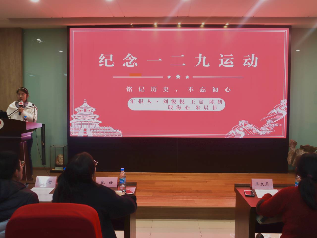 本次演讲比赛以“纪念‘一二·九’爱国运动86周年”为主题,选手们以不同方式、从不同角度阐述对“一二·九”爱国运动的理解和感悟,以真切的语言还原当时的情景,带领我们重温了那段惊心动魄而又热血澎湃的历史。那年,北平学生高呼口号,要求抗日救国;今天,食品学子激情演讲,表达内心爱国之情。他们或慷慨激昂,或低沉吟诵,或娓娓道来,或饱含深情,用自己炽热的心表达着对先烈们的无尚崇敬。