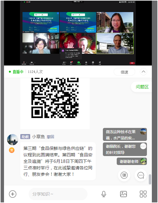 -瓦赫宁根大学及研究中心未来食品云端系列论坛”第三期会议隆重举行并取得圆满成功。通过总结与探索前两期论坛的经验与不足,本期会议的举办逐渐走向成熟化与系统化,成功吸引了来自国内外1300多名专家、学者和同行等听众的积极参与。本次会议围绕“食品保鲜与绿色供应链”这一极具特色与前沿的话题展开研讨。出席本次会议的嘉宾主要有荷兰瓦赫宁根大学及研究中心Jan Verschoor研究员、Leo Lukasse研究员以及浙江大学孙崇德教授和上海海洋大学谢晶教授。本次会议由瓦赫宁根大学及研究中心-食品生物研究院及培训学院中国项目发展经理刘珍博士主持。