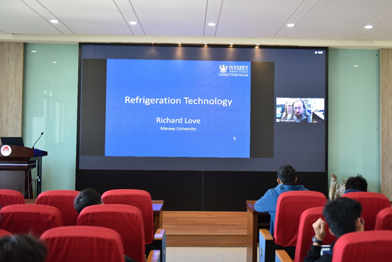 本次讲座的主题为“Refrigeration Technology(制冷技术)”。Richard博士从早期新西兰的食品出口情况讲到了食物加工方式-罐头,进一步衍生出冷藏技术,并详细介绍了制冷系统的工作原理。接着,Richard博士提到了一种新的食品加工手段-喷雾干燥技术,并提供了使用来自可再生能源(风能、水能或太阳能)进行电能转化的可持续性选择。互动环节,同学们踊跃发言提问,Richard博士都一一作了详细的回答,现场气氛热烈。最后,讲座在同学们热烈的掌声中画上了圆满的句号。