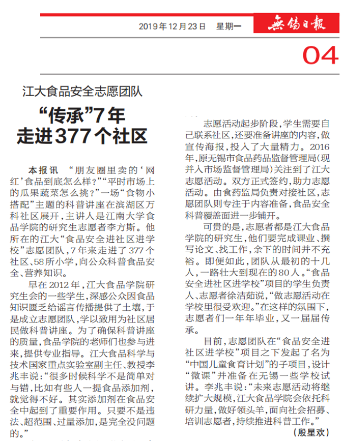 《无锡日报》报道链接://szb.wxrb.com/pc/layout/201912/23/node_A04.html