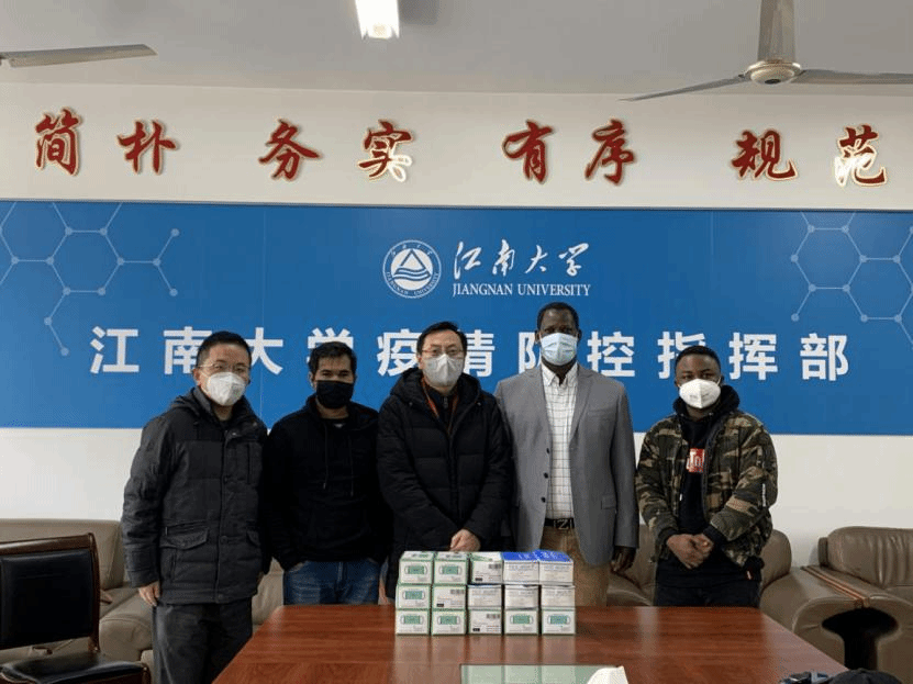 安危与共,风雨同舟。食品校友、来自布隆迪的留学生BUTOYI GABRIEL向学校捐赠1000只一次性口罩和善款1万元。无锡迅朗联大机能水技术研究院副总裁李潇潇女士捐赠一台消毒液生产设备,保障校园消毒工作顺利进行。