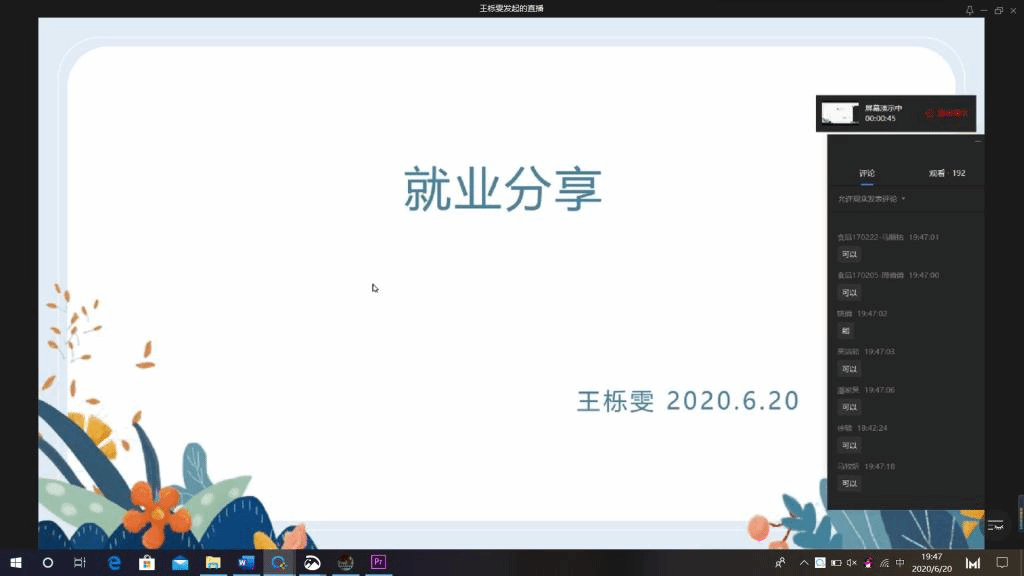 举办“身边的榜样,前行的力量”2020届优秀毕业生分享会之就业创业专题活动,邀请陈慧、杨志杰、王栎雯三位毕业生分享自己的成功就业经验,270余名同学积极报名参加此次活动。