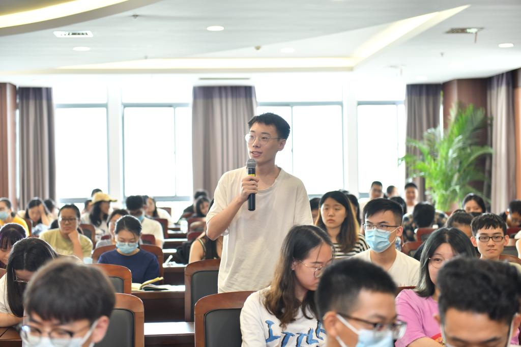 在提问互动环节,同学们先后就“如何看待粮食生产问题越多越受重视的观念”、“生物场的实际应用”以及“军粮储备”等问题与吴子丹教授进行请教和探讨,现场问答互动气氛热烈。在活动的最后,耽美漫画