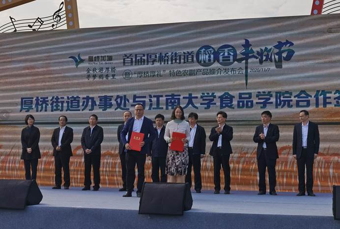 2020年11月7日,学院党委书记傅莉莉应邀出席无锡市首届厚桥街道稻香丰收节启动仪式,并与无锡市厚桥街道签订全面合作协议。