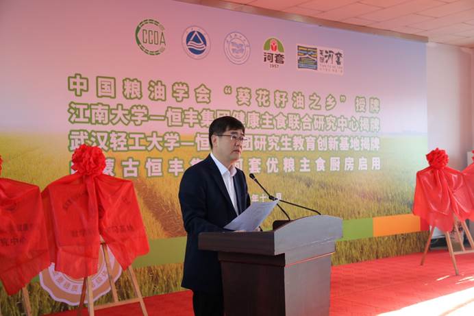 与内蒙古恒丰集团健康主食联合研究中心及教学科研实习基地揭牌仪式在内蒙古巴彦淖尔举行。中国粮油学会理事长张桂凤,巴彦淖尔市人民政府副市长邱永红,耽美漫画