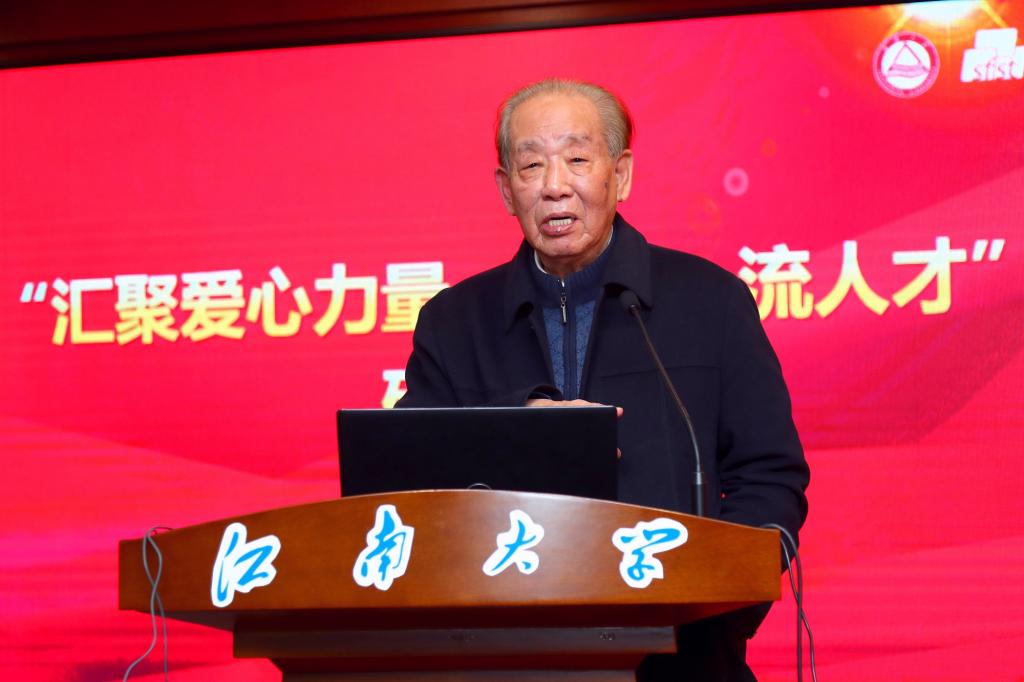 首任院长姚惠源教授进行讲话。姚老师向各位理事对基金会和食品行业做出的贡献表示感谢,他希望广大食品学子在企业和学界前辈的激励下,珍惜机会、奋发图强,努力成为未来食品领域的尖端人才,为实现“健康中国2030”和“食品工业强国梦”添砖加瓦。