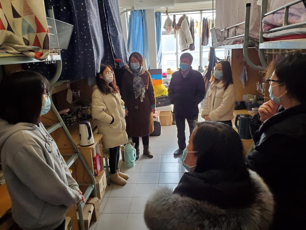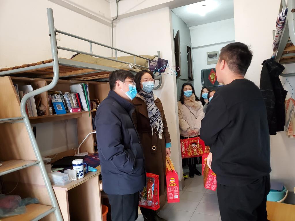 党委书记傅莉莉、院长刘元法、党委副书记魏珍吉、副院长孙秀兰和年级辅导员老师们带上节日问候,走访学生宿舍和实验室,慰问寒假留校学子,了解他们学习、生活情况、需求,鼓励他们安心学习、科学防控。