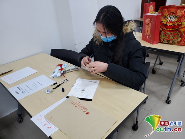“‘一封家书,足以表达我人虽在学校,但早已飞奔回家的心’,这是我写给远在哈尔滨的家人的家信开头。受疫情影响,今年是我多年上学第一次留校过年,本以为会冷清地度过这个假期,但学院开展的一系列活动确实温暖了我们的心。家书、大礼包以及临摹的春联都一同打包放进了信封,一想到明后天可能就会到达家人手中,脑海中已经浮现家人充满笑容的画面。”家在黑龙江不能回家过年的博士生赵璞分享了她的心情。