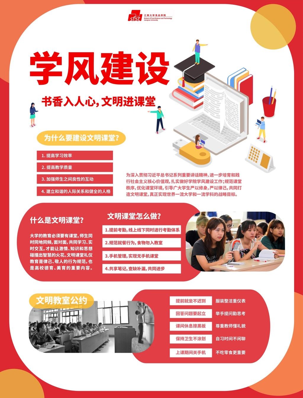 分团委、学生会、研究生会凝聚力量,制定文明教室公约,通过线上、线下等渠道进行宣传,号召同学们做到“增强时间观念,杜绝迟到早退;规范就餐行为,食物勿入教室;强化纪律意识,提高课堂质量;争做文明模范,不留一片垃圾”,营造了浓厚的文明课堂建设氛围。