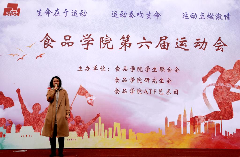 魏珍吉致辞,他表示,食品和体育有着共同的价值追求,即人类的健康,希望大家将食品精神与体育精神完美结合。作为学校首批体育精神试点单位,学院高度重视体育工作,积极开展各类体育赛事,涌现出一批优秀的食品体育健将,希望同学们在未来进一步弘扬体育精神,锻炼健康体魄。