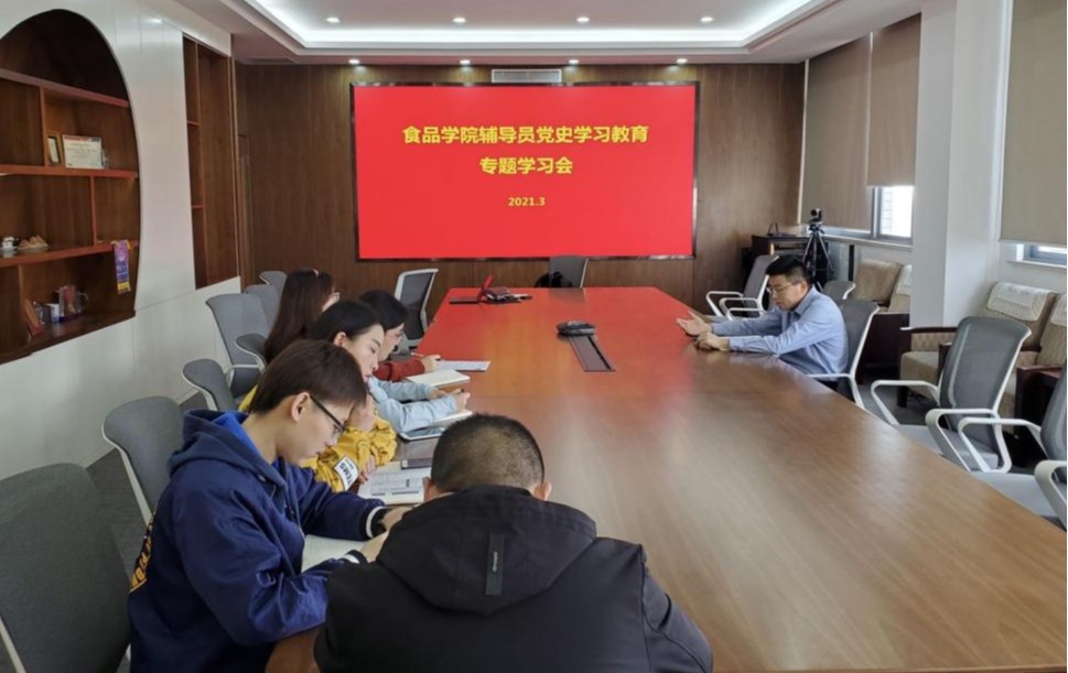 副书记魏珍吉带领全院辅导员于食品楼925会议室开展党史学习会议。