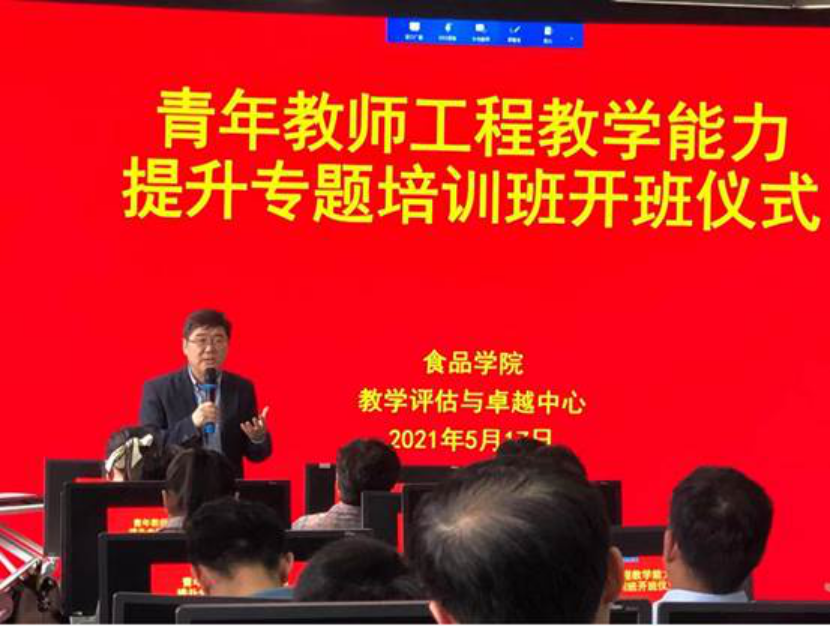 王海鸥老师以“食品工厂机械与设备简介”为题,围绕液态食品生产线主要设备、固态食品生产线主要设备的结构特点与选型计算做了专题培训第一讲。参培青年教师们纷纷表示,在工程实践能力、项目教学能力等方面均有所收获。