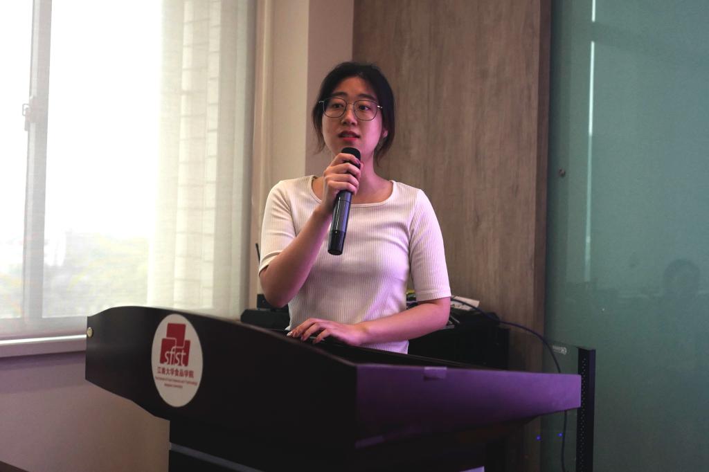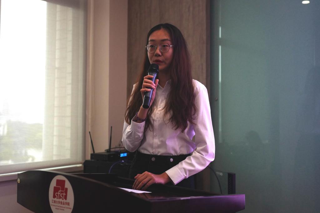 潘雨琦同学分享了博士科技服务团“深耕二十年服务国计民生”的实践历程。博士团从1999年成立开始,团队成员共走访200余家食品企业,足迹遍布全国12个省15个市县,总里程达16000公里,为企业解决技术难题170余项。团队还先后前往山东济宁、福建龙海、江苏六合等地,与政府相关部门合作,举办食品行业产学研对接交流会。项目连续九年获得江苏省大学生社会实践优秀团队、江苏省大学生优秀志愿项目。潘雨琦表示,博士科技服务团将继续秉持“科研服务生产、服务社会、服务人民”的初心,通过发挥专业优势、精准服务地方,用科技改善民生,用实践谱写青春梦想。