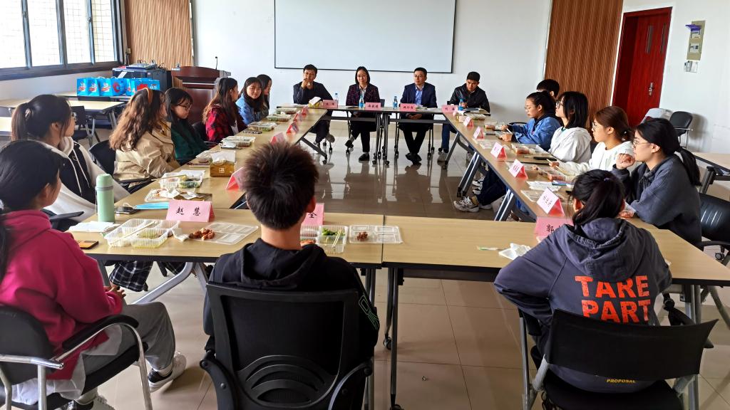 在食品楼D916会议室召开2021年国内交换生迎新午餐会。学院党委书记傅莉莉,党委副书记、副院长魏珍吉,分团委书记朱伟以及来自新疆石河子大学、山西师范大学大学的15名交换生参加了座谈,座谈会由辅导员刘鑫主持。