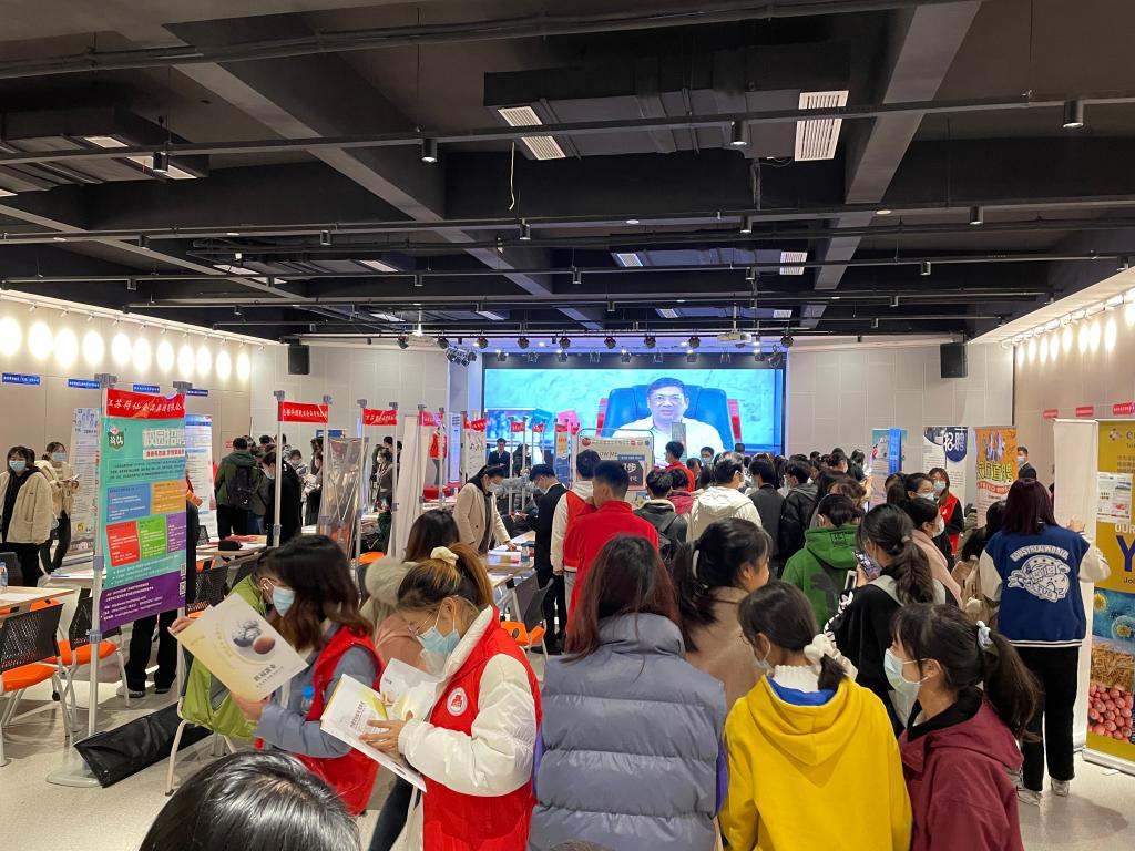 各企业通过海报、宣传手册等形式进行了宣传,同学们走到心仪公司的展位前与企业的HR进行深入交流。通过企业工作人员的讲解,同学们了解到目前企业的发展方向、岗位需求等信息。除毕业生外,其他年级的同学也来到现场提前感受就业形势,现场氛围热烈。