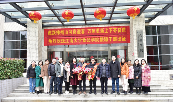 将全力支持,做好后援工作,并希望两位援疆干部将“江南食品人,敢为天下先”的精神和“大院小家”的文化带到新的工作岗位中去,以苦砺志,建功成长,高质量完成此次援派任务,为学校和学院争光添彩。