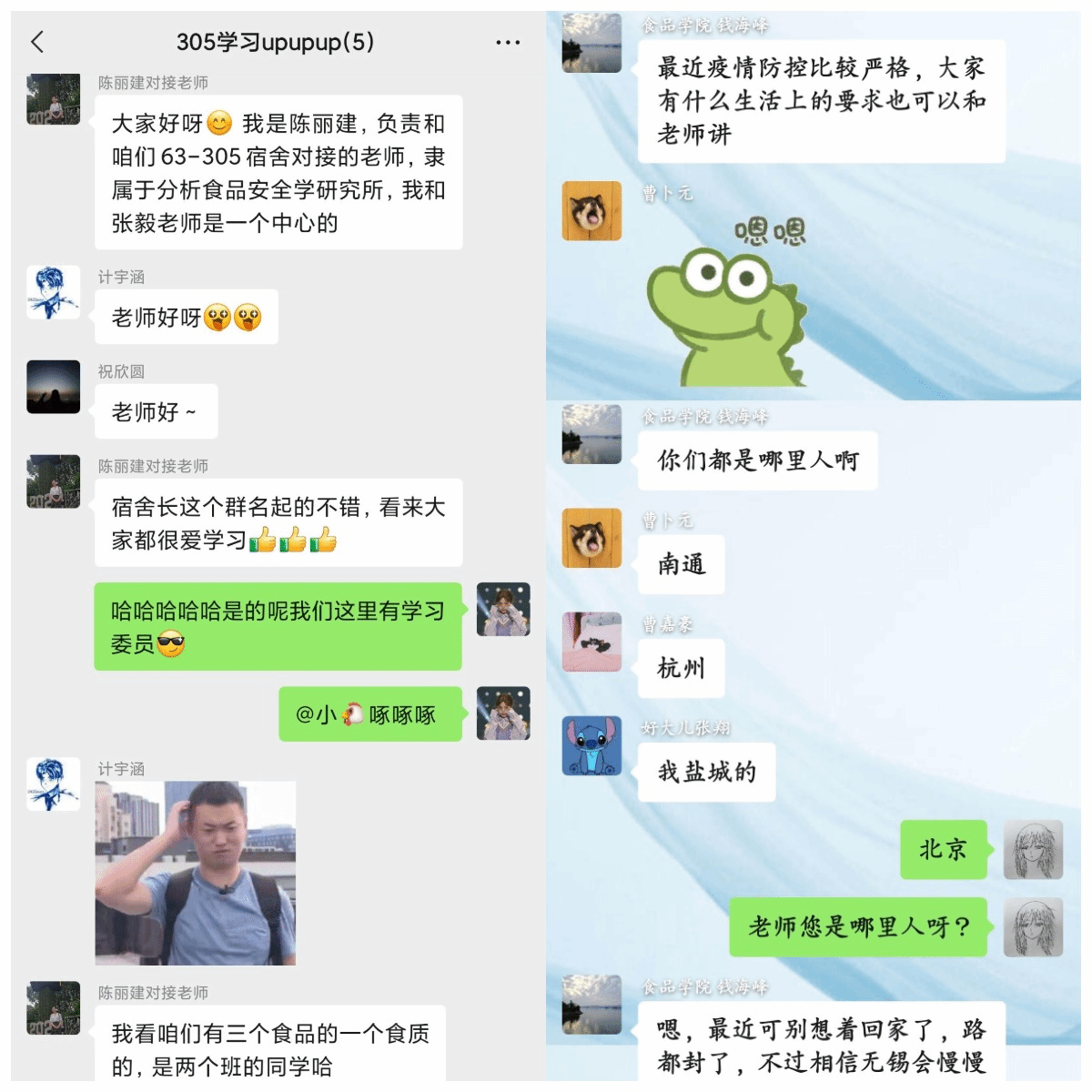 句句叮呤嘱安全,声声牵挂暖人心。食科2105班张嘉驰同学表示,“突如其来的疫情影响了同学们的生活,却没有影响学院老师对我们的关心。刘院长主动联系我们,了解疫情期间大家在学校的学习生活情况,并对我们的专业课学习、职业规划进行了指导。通过与老师的交流,不仅加深了我们对食品专业的认识与理解,更拓宽了视野,让我们更加明晰了前行的方向,坚定了脚下的道路,也缓解了内心的焦虑情绪。”