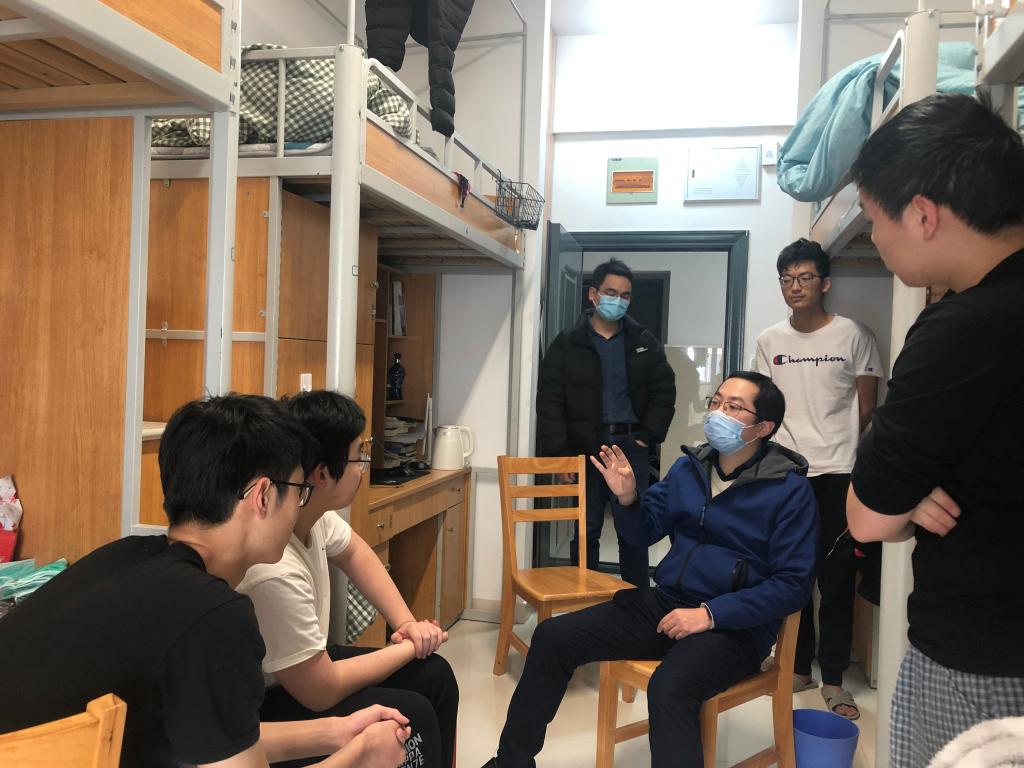 学院教职工党支部闻令而动, 80名教职工党员主动请缨担任第一批本科生宿舍导师,在明确工作要求和联系清单的基础上迅速与学生宿舍取得联系,通过微信群、QQ群、企业微信群组建立联系,有些还召开了线上见面会,关注学生日常健康状态、线上学习效果,帮助学生规划大学生涯,调适心理状态,坚定学生抗疫信心,迎接美好的大学生活。驻校参加抗疫工作的了刘元法院长和程力副院长还与联系宿舍进行了面对面的交流。