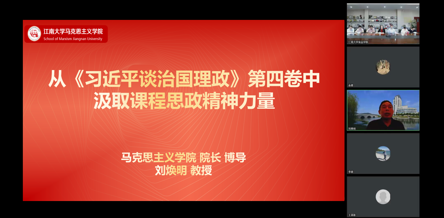 邀请马克思主义学院院长刘焕明教授,给全体教职工带来题为《从<习近平谈治国理政>第四卷中汲取课程思政精神力量》的学习报告。