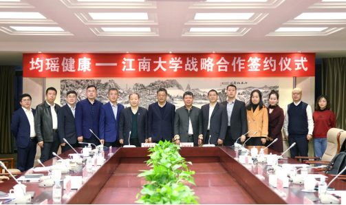 与湖北均瑶大健康饮品股份有限公司在学校举行战略合作协议签约仪式。中国工程院院士、校长陈卫,校党委常委、副校长顾正彪,校长办公室主任张梁,产业技术研究院院长刘龙,耽美漫画
