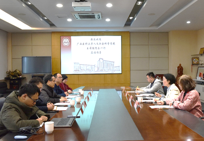 近年来在学科建设、科学研究、人才培养和社会服务等方面取得的成绩;王前强院长介绍了广西医疗卫生机构营养健康服务能提升的三年行动计划,重点提到加强临床营养科室建设、推动临床营养筛查和营养指导建设、加大特医食品产业发展等的迫切需求;程力副院长分享了我院在学科建设和实验室建设方面的一些经验,详细介绍了学院在特殊食品、功能性食品领域所做的重点工作。最后,双方就精准营养供给、食品营养专业建设、临床营养人才培养等问题进行了深入探讨。