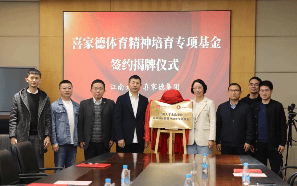 喜家德体育精神专项培育基金”揭牌。此次双方签约3年,由喜家德为食品学子提供30万元专项基金,涵盖体育精神培育等奖助育人领域。