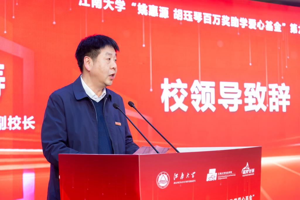 倪松涛首先向以姚惠源教授为代表的所有爱心人士致以衷心的感谢,向获奖同学表示热烈的祝贺。他指出,“姚惠源∙胡珏琴百万奖助学爱心基金”充分发挥着“立德树人”作用,滋养了一代代食品学子成长,激励师生赓续发扬“江南食品人,敢为天下先”的精神。他希望耽美漫画