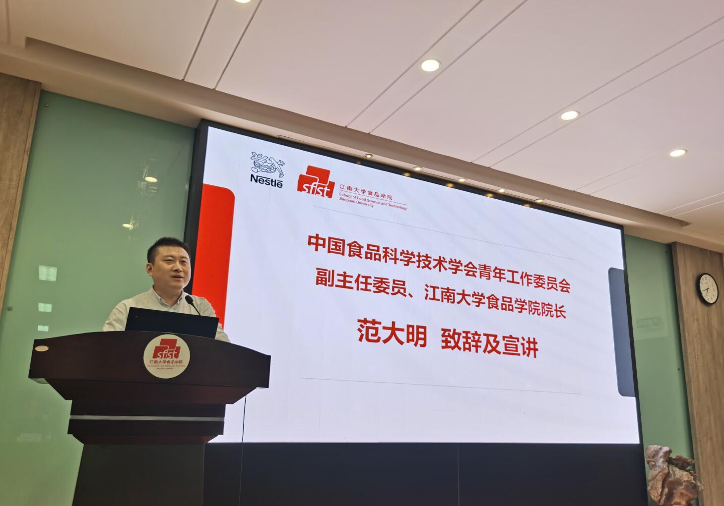 院长范大明致辞并讲解竞赛相关内容。他对学会和雀巢研发(中国)有限公司为当代大学生提供施展创新才华的优质平台表示诚挚感谢,围绕学会倾力打造的竞赛育人体系及“专业实践与产学研融合”创新模式进行介绍,并从活动宗旨、主题方向、基本规则、竞赛流程、奖项设置等方面对本次大赛予以详细解读。范大明鼓励同学们将理论知识有效转化为实践,在尊重科学、调研市场、发挥灵感等基础上,赛出水平,收获成长。