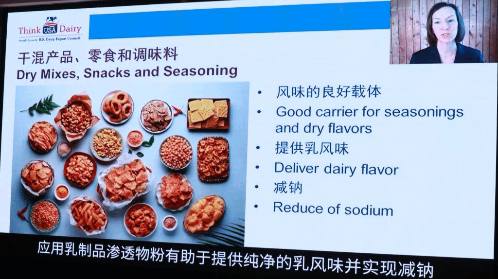 在大赛主题乳蛋白的专业知识讲解环节,美国乳品出口协会顾问Donna Berry在线讲述了“乳蛋白的力量,推动潮流创新”;协会全球原料技术营销服务副总裁Annie Bievenue讲述了“美国乳制品渗透物份的益处、多功能性及应用机遇”,使参赛者更加深入地了解乳品渗透物粉的市场需求和成品添加现状。