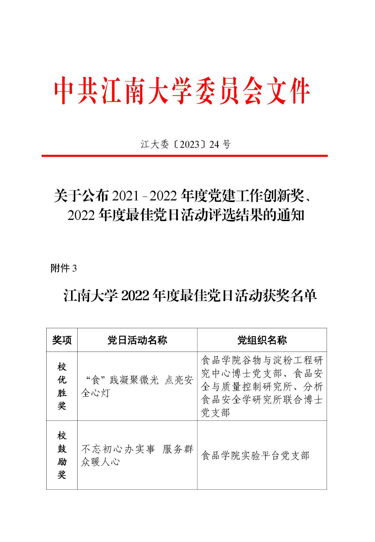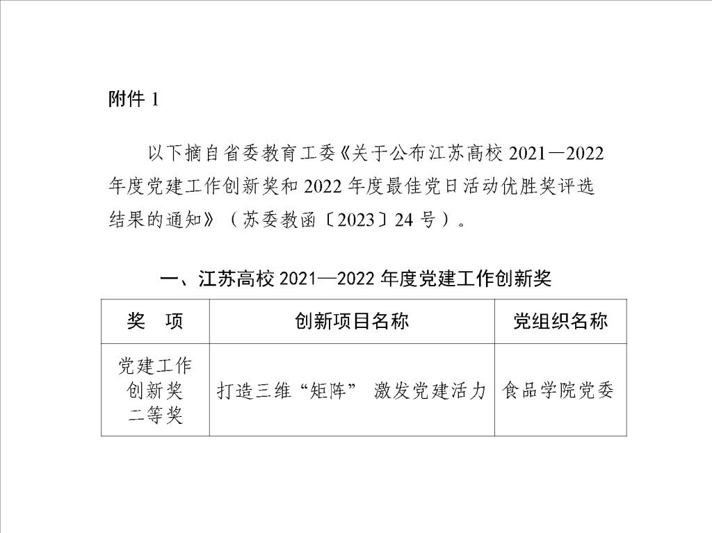 获江苏省党建工作创新奖二等奖,谷物与淀粉工程研究中心博士党支部和食品安全与质量控制研究所、分析食品安全学研究所联合博士党支部及实验平台教工党支部分别获耽美漫画
