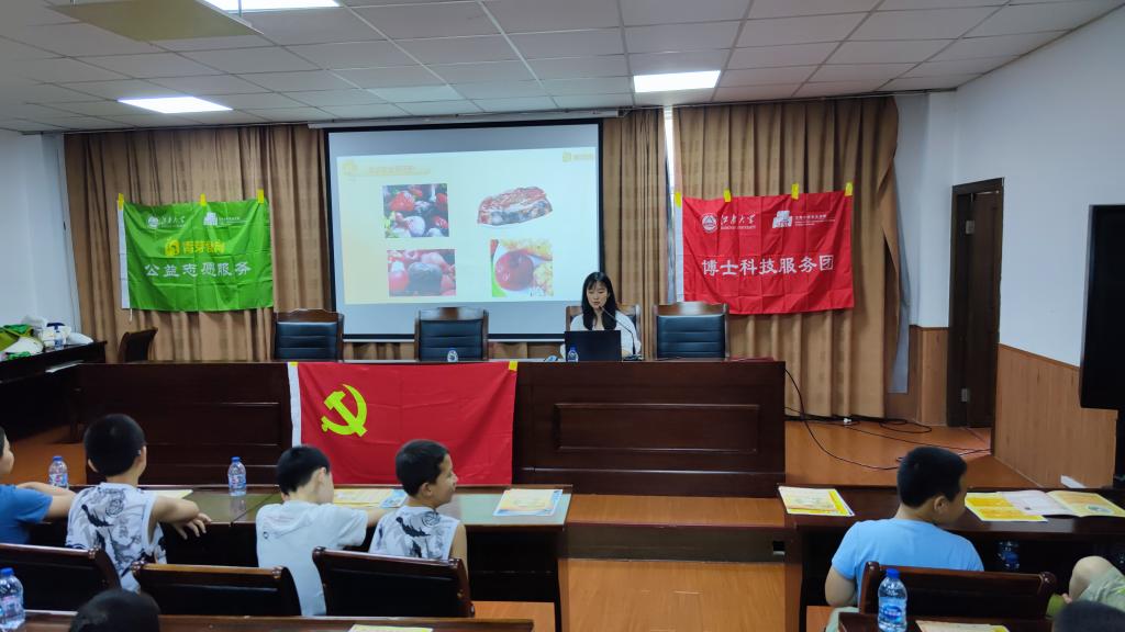 宣讲前期,博士生党员根据自己的研究方向分组,围绕“食品安全”“儿童食育课堂”“少吃油,吃好油”等方面形成科普专题,搜集资料并整合成册。宣讲结束后,博士生党员向社区居民发放科普宣传资料和习近平新时代中国特色社会主义思想相关书籍,为食品科普教育增砖添瓦,为乡村振兴输送思想力量。