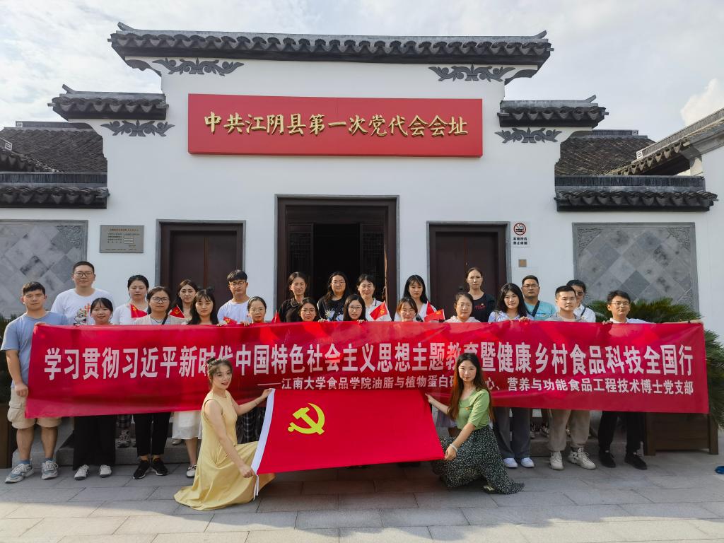 组织党员同志,以实际行动助力乡村振兴,共筑健康中国。7月14日,油脂与植物蛋白研究中心博士党支部,营养与功能食品工程技术、国家工程实验室联合博士党支部两个省级样板支部组成近四十人的博士科技服务团前往江阴市新桥镇,开展“健康乡村,食品科技全国行”党日活动与社会实践活动。