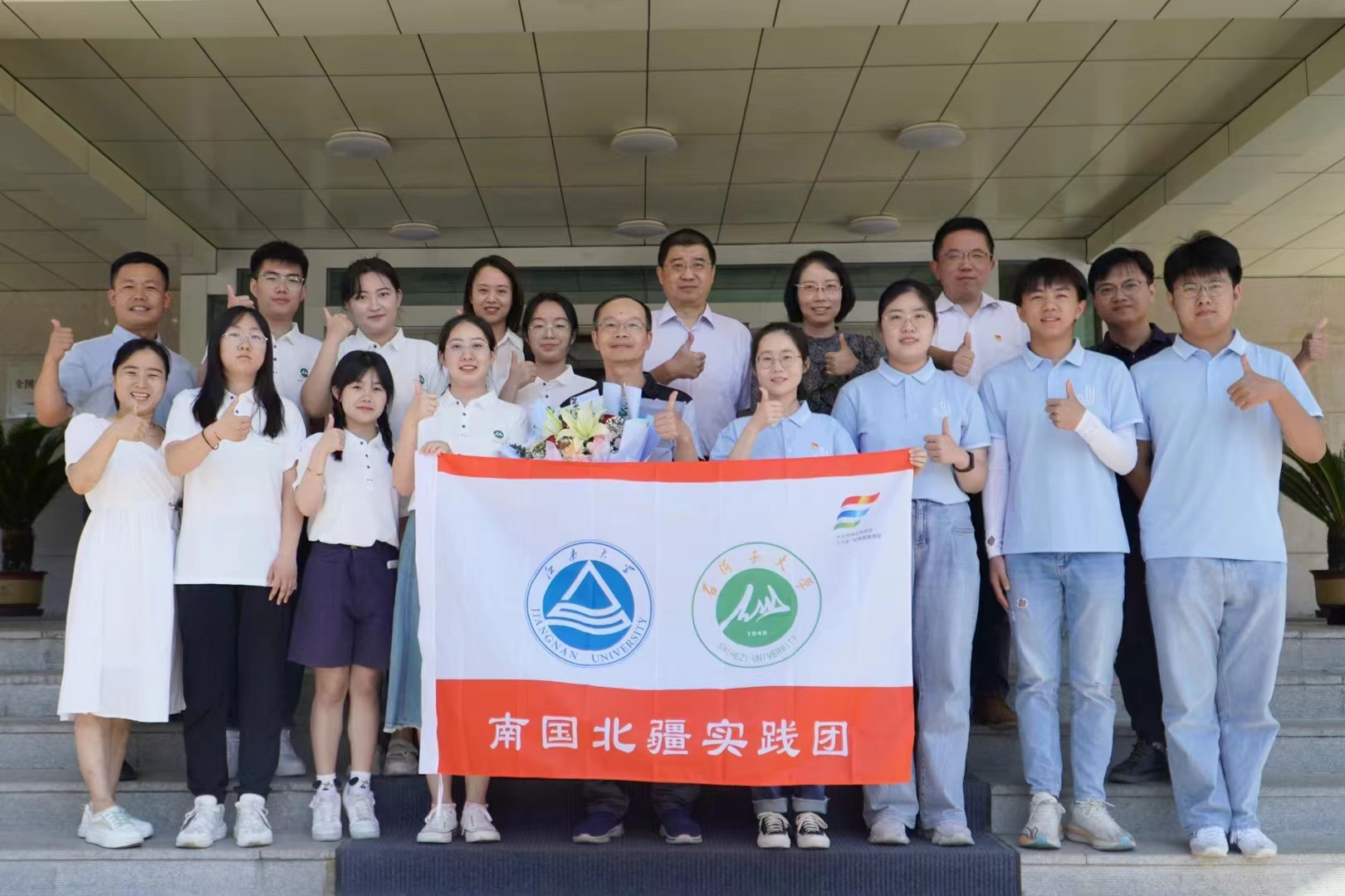 党委副书记、副院长李雷为联合实践团授旗,开启华东之旅;7月15日,在新疆石河子大学,我院党委书记傅莉莉、石河子大学耽美漫画