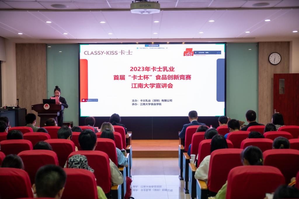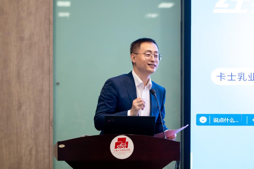 的学科实力与行业影响,期待在人才培养、科技创新等多领域深化合作。他围绕企业创立及发展、品牌、愿景等展开介绍,并指出,基本品质、产品口感、包装视觉等多维度的全面创新是卡士创造中国乳业奇迹的核心要素。张会民还详细解读了参赛规则、选题方向、作品要求、比赛流程、奖励机制等,鼓励同学们交流、分享、实践、成长。