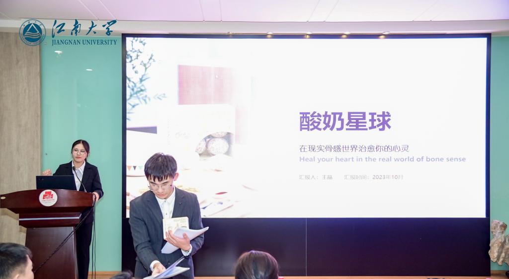 经前期选拔,共有17组选手入围决赛现场答辩。各组选手围绕作品的技术、商业、创意等内涵要素进行展示。评委老师与参赛者积极互动探讨,现场气氛热烈且融洽。最终,9件作品斩获奖项。其中,《动肽多肽型发酵乳》获一等奖;《缪尔无酒精奶啤》《酸奶星球》等2件作品获二等奖;《之屿·蛋仔布丁》《麦高粒米酒奶冻》《乳此蘑力》等3件作品获三等奖。