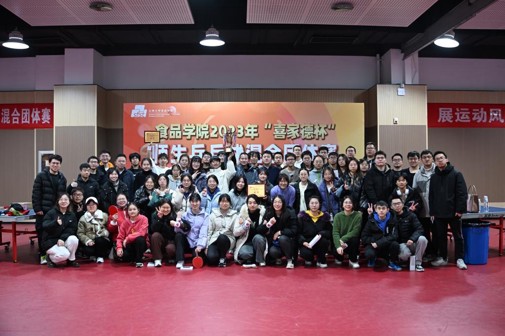 共有6支研究生队伍、8支本科生队伍参赛,14名教工分别加入其中一支队伍。比赛采用男单、女单、男双、女双、混双五场对抗赛的形式比拼团体竞技水平。比赛伊始,选手们便迅速进入状态,师生配合妙球频出,张驰之间展现昂扬姿态,一攻一守尽显食品风采。