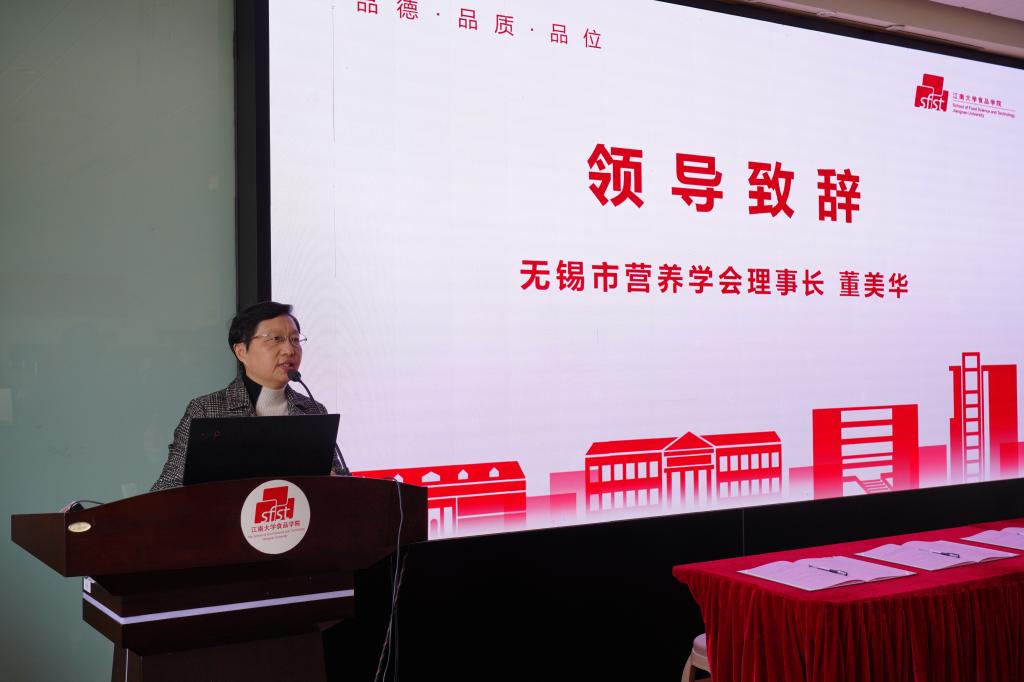董美华代表无锡市营养学会对党建联盟的成立表示祝贺和期盼。她解读了“健康中国2030规划纲要”的背景和内涵,并希望各盟员单位能够以党建共建促进业务合作,进一步深化课题研究,加强项目协同,始终贯彻以人民为中心的发展思想,利用党建联盟的平台和各自的专业优势为基层群众的营养健康及相关知识普及提供服务和保障。
