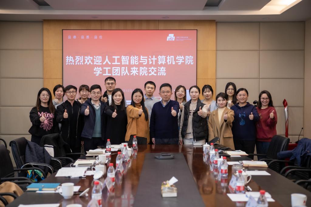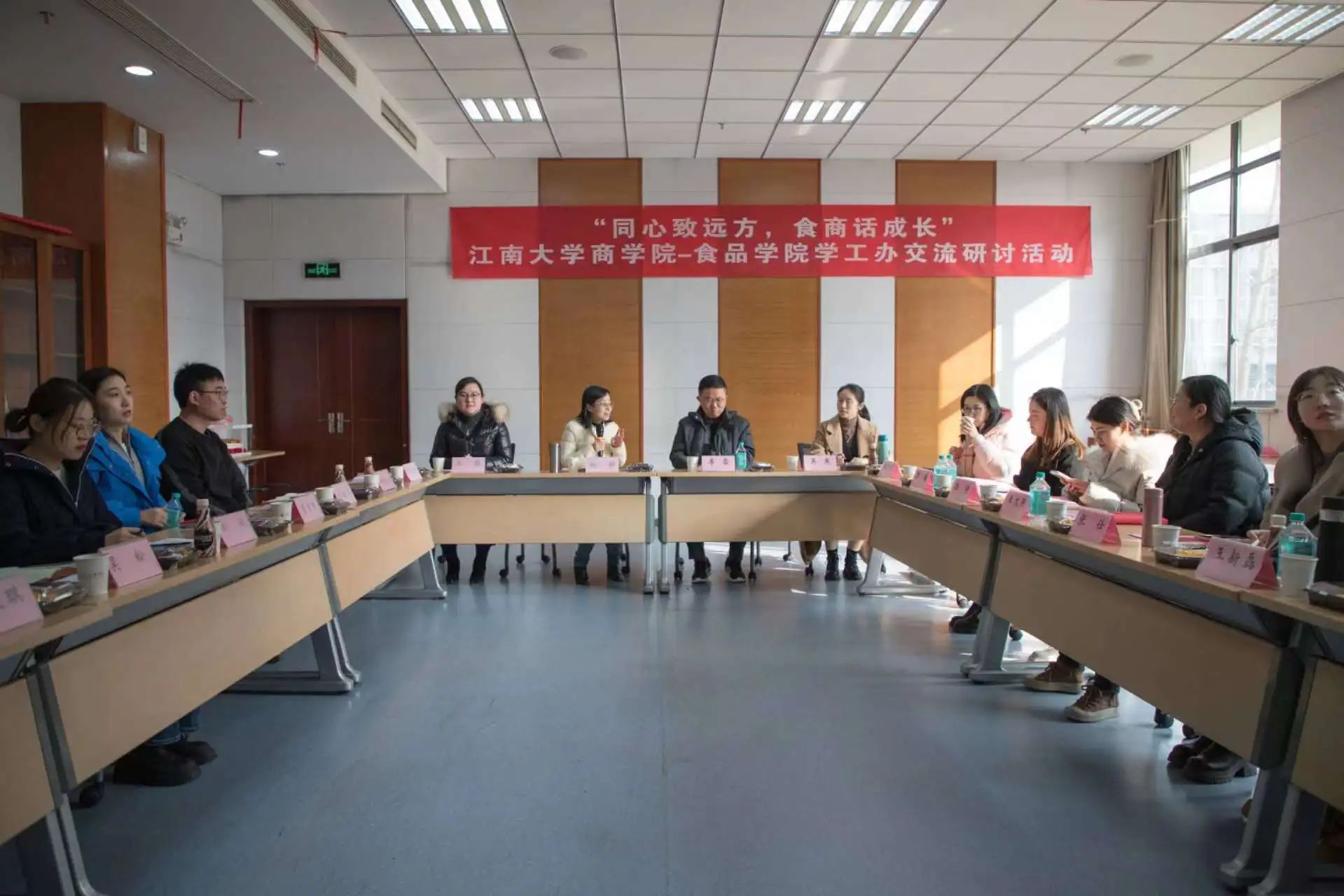 D910会议室开展面对面座谈交流。王莉莉介绍人工智能与计算机学院在人才培养、思政工作等领域的经验做法和未来展望;李雷作题为《奋力推进高质量内涵式发展,创新培育未来食品青年》的分享发言;与会人员就共同关心的话题和联合开展学生活动的可能性予以探讨。座谈会前,对方学院学工组参观食品学科史馆。