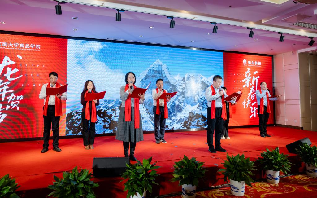 范大明首先致新年贺词。他指出,学院2023年取得的累累硕果得益于全体教职员工同心同向、砥砺奋进,感谢大家倾心倾力的付出与奉献。新的一年,江南食品人在提振士气、抖擞精神的同时,要继续保持团结奋斗、不骄不躁的态度,加强自我审视,锚定未来发展,心往一处想,劲往一处使,共同谱写更加辉煌的篇章。